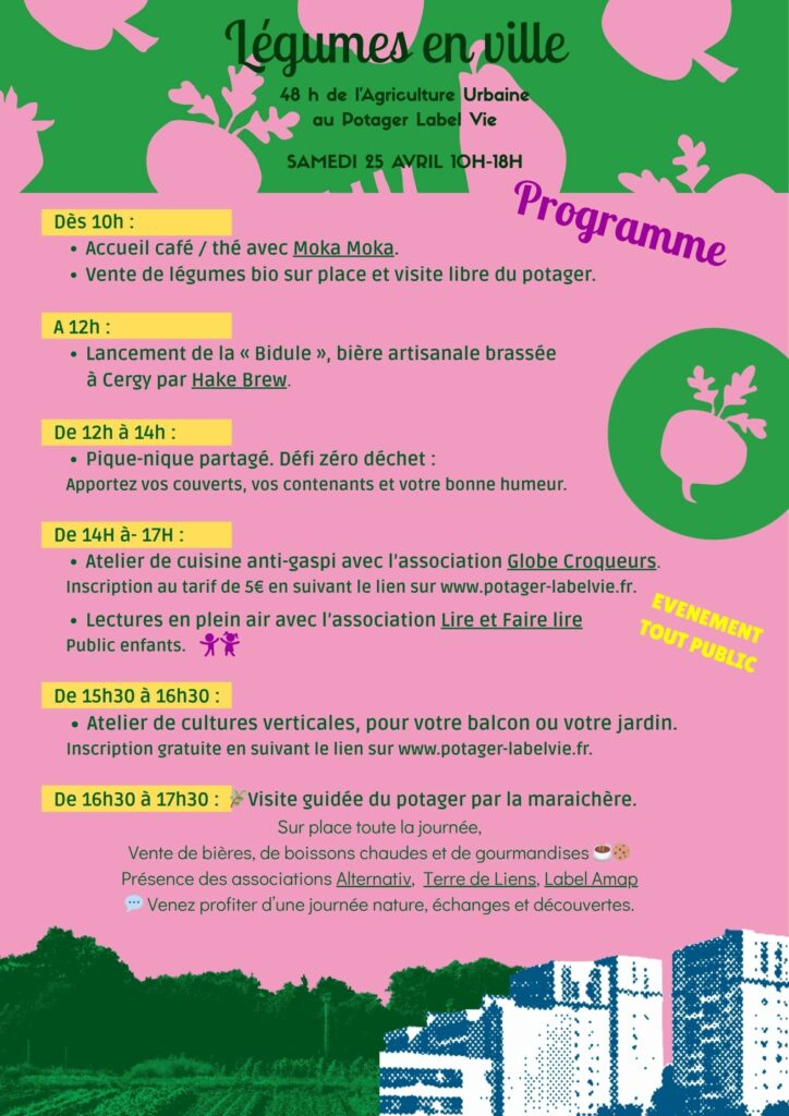 Samedi 13 et dimanche 14 septembre2025, nous avons eu le plaisir de tenir un stand au cœur de Cergy Village, lors du festival Charivari. Un beau moment pour faire découvrir nos légumes, nos projets et échanger autour d’une alimentation locale et durable.